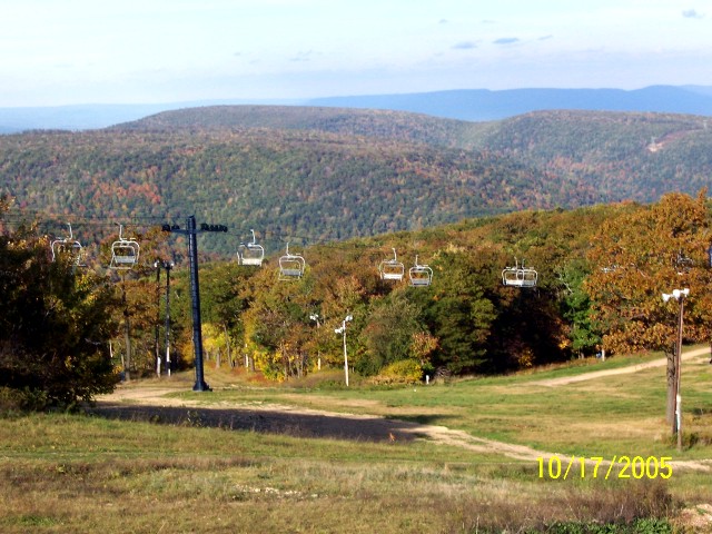 The skier's view of the top of the mountain down the trails, down the slopes...