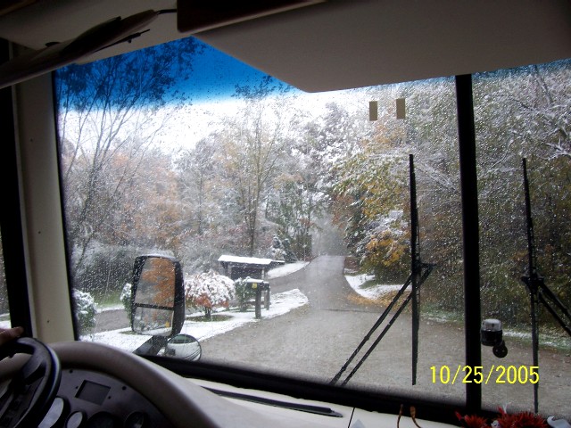 Looking at the parking area in front of the KOA office building (the propane filling station is on the far end of the office building).