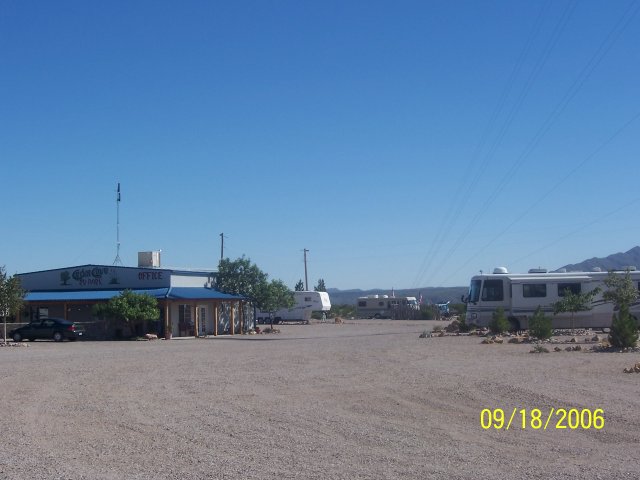 Here's our motor home in front of the Cedar Cove RV Park office. The cell phone tower is behind us.