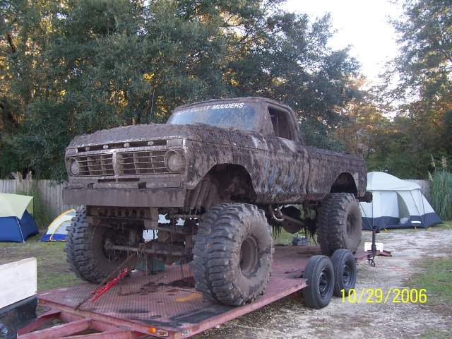 This guy's trailer isn't quite as fancy as some of the others, but you can still read the name on the windshield ("East Coast Mudders").